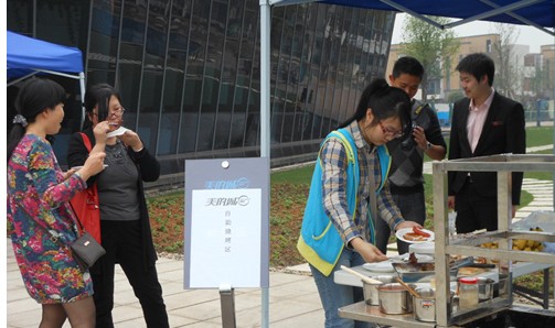 4月7日10点30分在荣和山水绿城营销中心前广场举行了美好时光 幸福滋味烧烤活动,更有拔河、大型拼图、飞行棋团队大比拼等活动。 10点多天空下起了小雨,原定在广场的活动移至营销